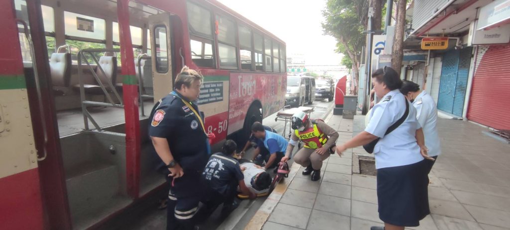 By admin / January 10, 2024 ประชาสัมพันธ์การช่วยเหลือประชาชนเกิดอุบัติเหตุ วันนี้ 13พ.ค.2566 เวลาประมาณ 07.40น. ขณะที่ ร.ต.อ.ศิริชัย วงษ์พิทักษ์(บุปผา601) ด.ต.สมเกียรติ โทนัน (บุปผา6603) พร้อมด้วย ส.ต.อ.ลิขิต ทำนา (บุปผา6610) ได้ปฏิบัติหน้าที่อำนวยความสะดวกการจราจรบริเวณถ.ประชาธิปกมุ่งหน้าวงเวียนใหญ่ ขณะปฏิบัติหน้าที่ได้รับแจ้งว่ามีผู้โดยสารได้หล่นจากรถประจำทางสาย3และได้รับบาดเจ็บบริเวณขาข้างซ้าย จึงได้ประสานกู้ชีพกู้ภัยช่วยสนับสนุน ให้การช่วยเหลือเบื้องต้น นำส่งรพ.สุขสวัสดิ์ เรียบร้อย