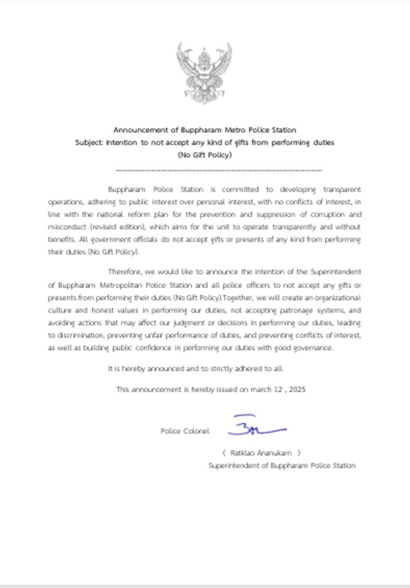 ประกาศนโยบายต่อต้านการรับสินบน (ANTI-BRIBERY POLICY) O18-ประกาศนโยบายต่อต้านการรับสินบน-2568 ไทย 01 O18 เจตนารมณ์นโยบายต่อต้านการรับสินบน (ANTI-BRIBERY POLICY)